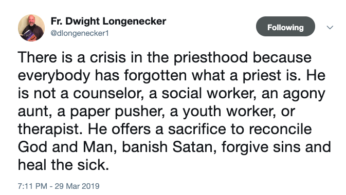 Do you agree with Fr. Longenecker’s tweet about the priesthood?