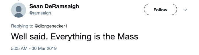 This user added, “Well said. Everything is the Mass.”