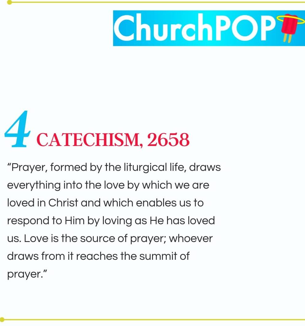 “Prayer, formed by the liturgical life, draws everything into the love by which we are loved in Christ and which enables us to respond to Him by loving as He has loved us. Love is the source of prayer; whoever draws from it reaches the summit of prayer.”