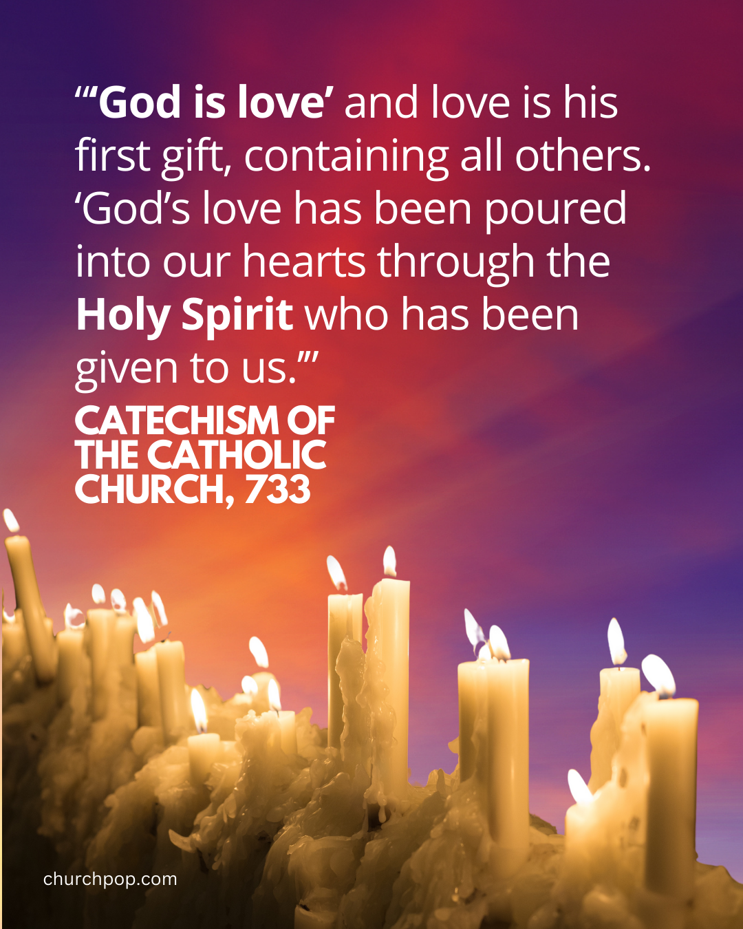 “‘God is love’ and love is his first gift, containing all others. ‘God’s love has been poured into our hearts through the Holy Spirit who has been given to us.’”