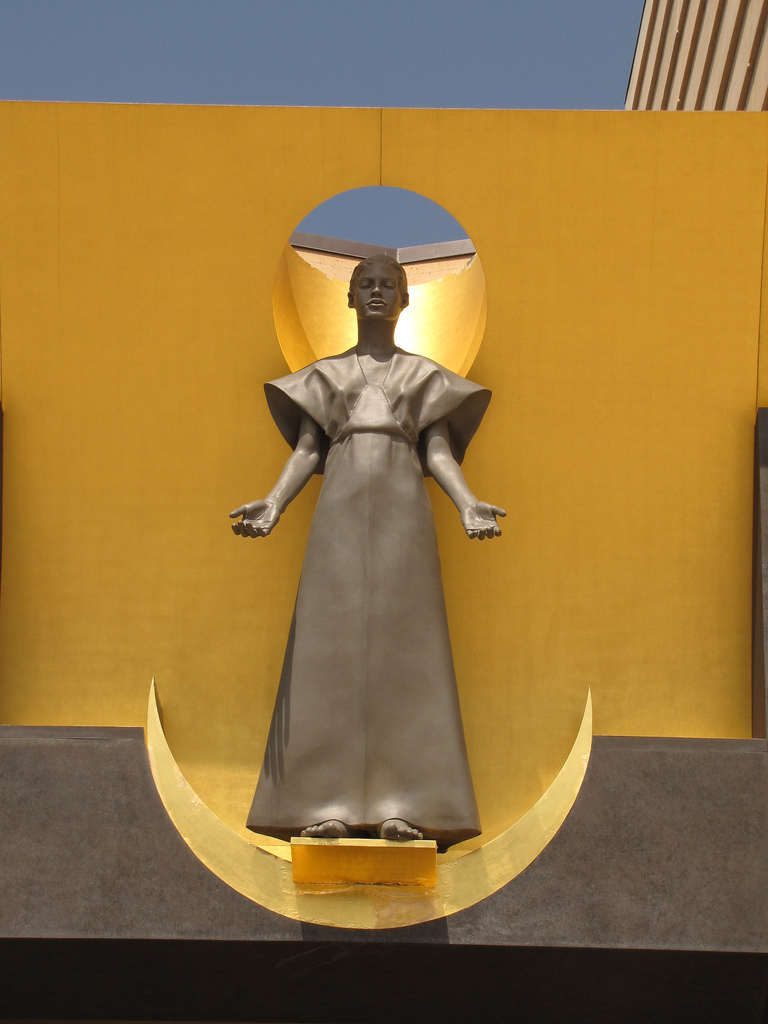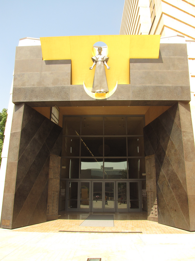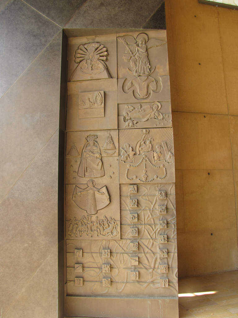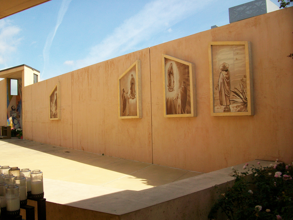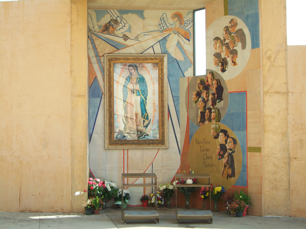 In addition to its unique design, the cathedral is also noteworthy for having an original relic from St. Juan Diego’s tilma, as well as being the resting place of famed actor Gregory Peck. You can see both of these things and more in the collection of pictures below, but first, let’s start with the cathedral’s design.