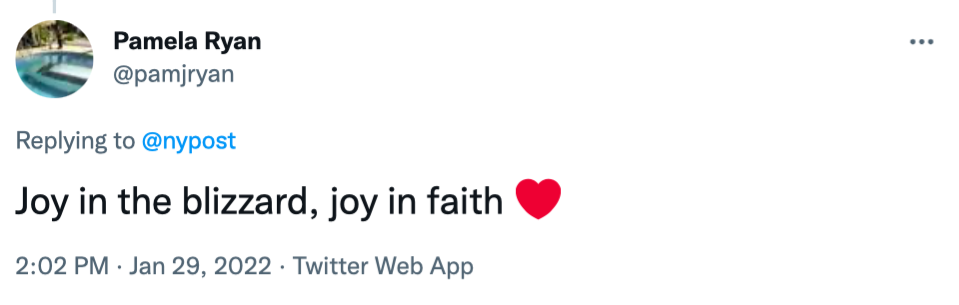 This user said, “Joy in the blizzard, joy in faith. ❤”