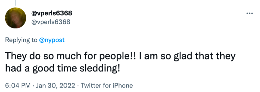 Another user said, “They do so much for people!! I am so glad that they had a good time sledding!”
