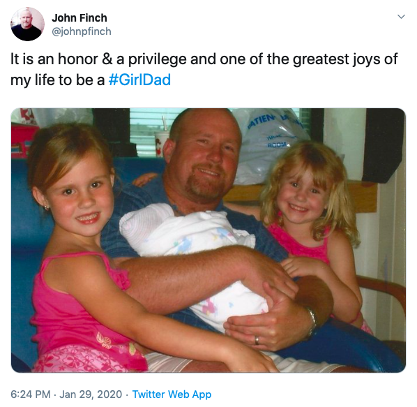 Finch’s post reads, “It is an honor and a privilege and one of the greatest joys of my life to be a #GirlDad.”