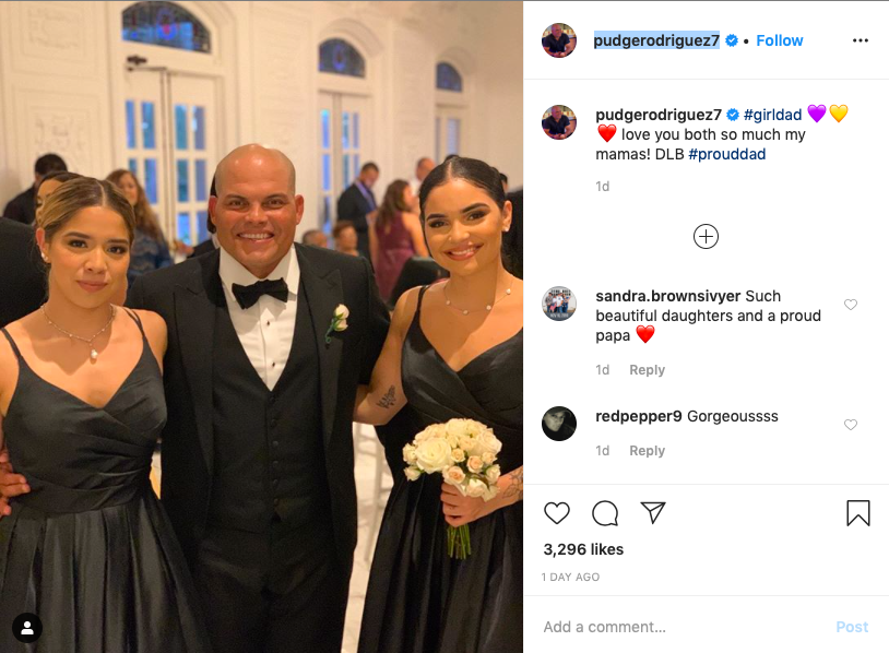 Former Major League Baseball catcher Pudge Rodriguez expressed his love for being a girl dad on Instagram.