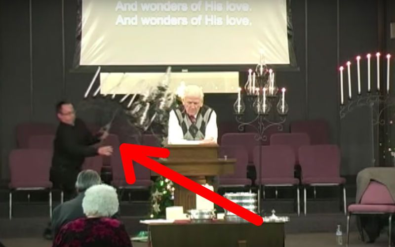 The viral video below shows a Protestant minister offering a prayer with perfect poise during a Christmas Eve service, all the while disaster unfolds behind him.
