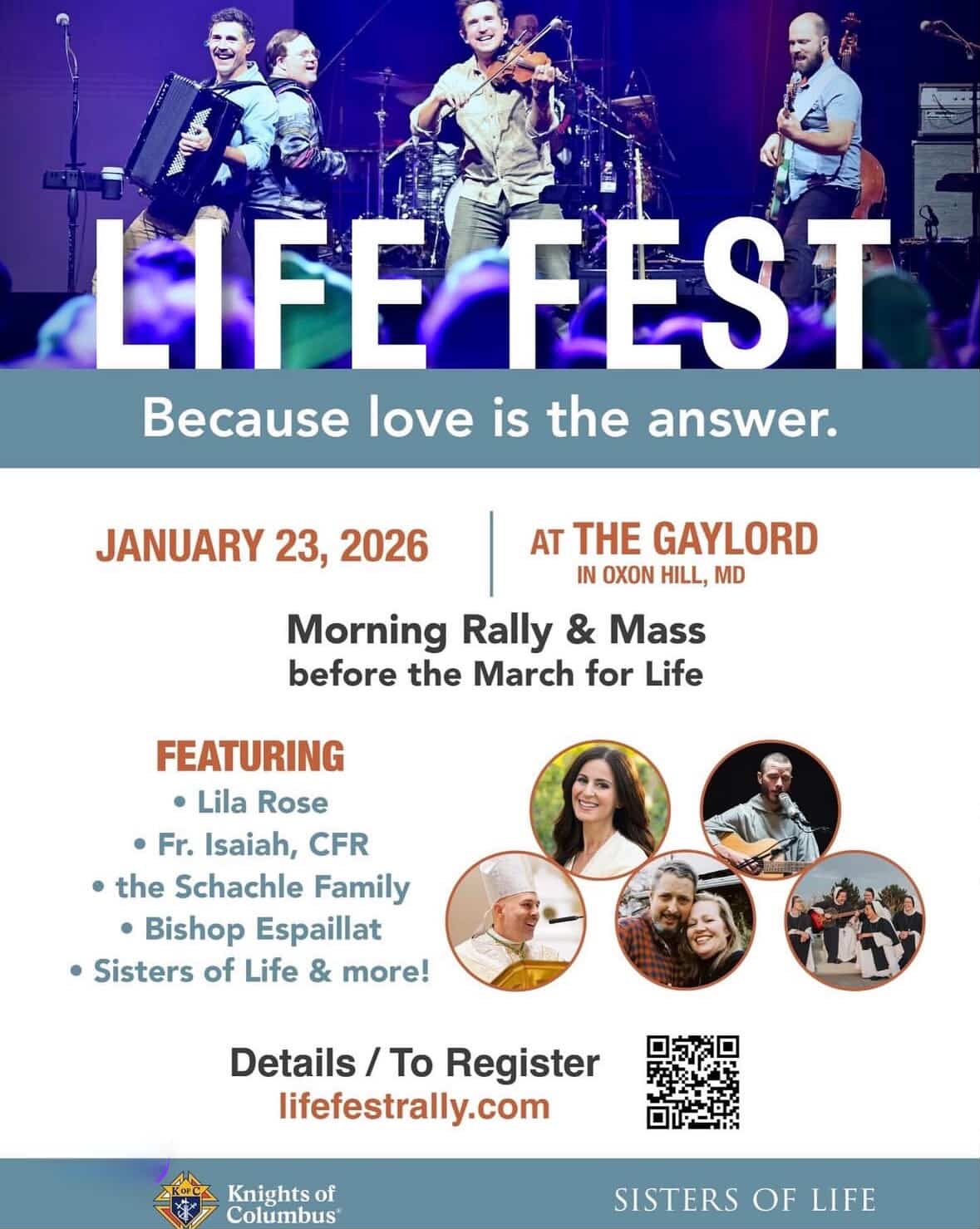 On Friday, Jan. 23, 2026, the Sisters of Life and the Knights of Columbus will host Life Fest 2026 at the Gaylord National Resort and Convention Center in Oxon Hill, Maryland.