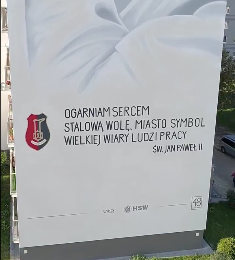Therefore, the mural quoted his words about the city: “I embrace with my heart Stalowa Wola, a city symbolic of the great faith of working people.”