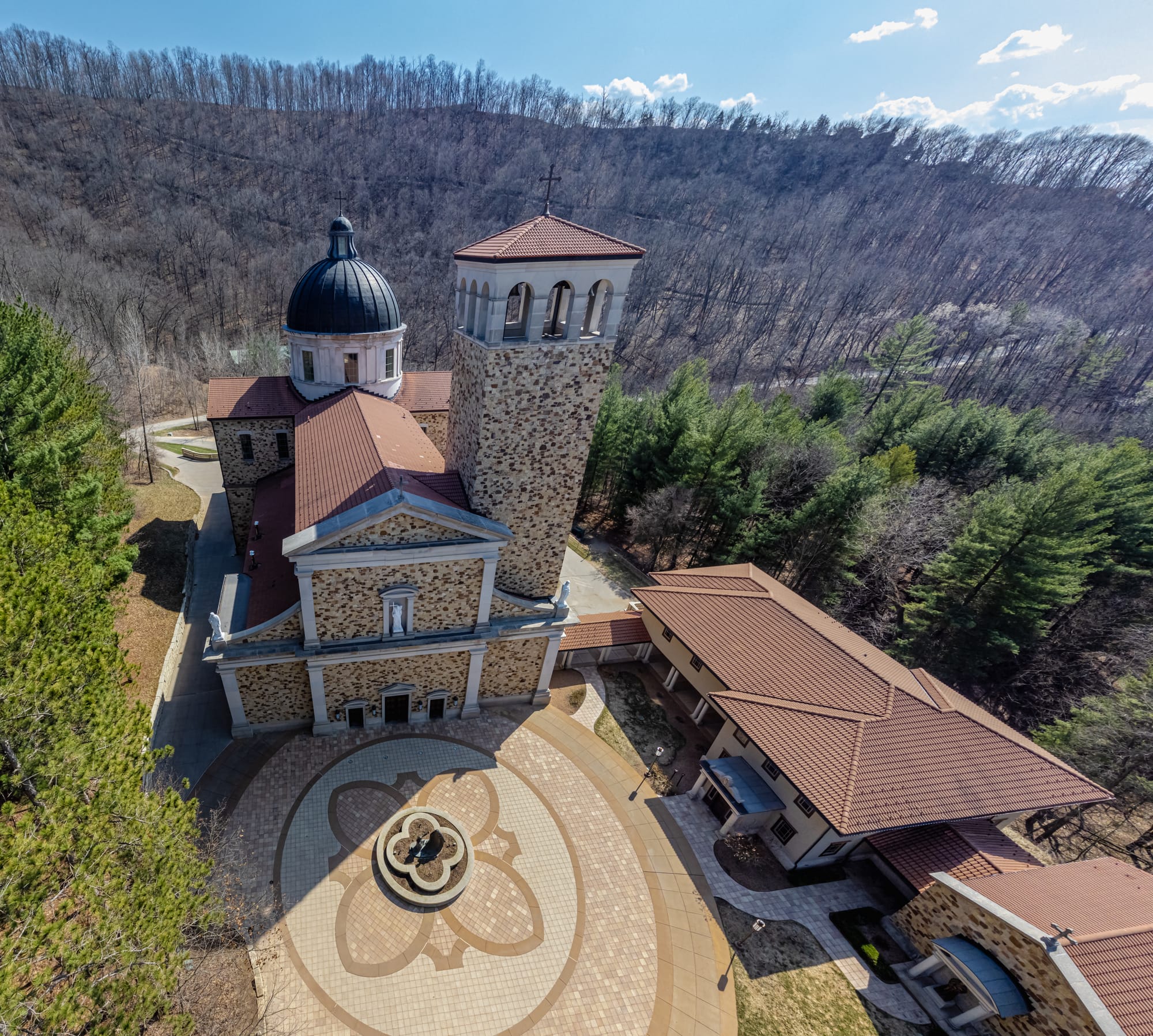 The National Shrine of Our Lady of Guadalupe has countless outdoor devotions, where you take in the serene countryside of Wisconsin.