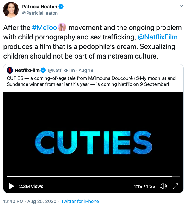 Heaton’s tweet reads, “After the #MeToo movement and the ongoing problem with child pornography and sex trafficking, @NetflixFilm produces a film that is a pedophile’s dream. Sexualizing children should not be part of mainstream culture.”