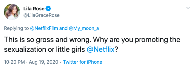 Rose’s full tweet reads, “This is so gross and wrong. Why are you promoting the sexualization [of] little girls, @Netflix?”