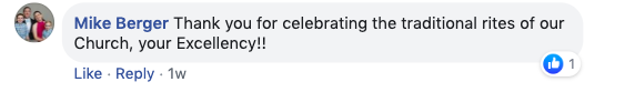 Commenter Mike Berger added, “Thank you for celebrating the traditional rits of our Church, your Excellency!!”