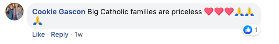 Commenter Cookie Gascon also said, “Big Catholic families are priceless ❤️❤️❤️🙏🙏🙏”