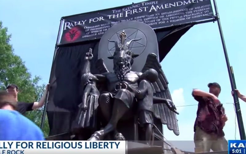 Lord, have mercy. The Satanic Temple held a First Amendment rally on Aug. 16, requesting that their 7.5-foot bronze statue of Baphomet, a 14th century goat-faced figure with wings, also accompanied by two smiling children, be permanently placed on the Arkansas Capitol state grounds in Little Rock. Here’s...
