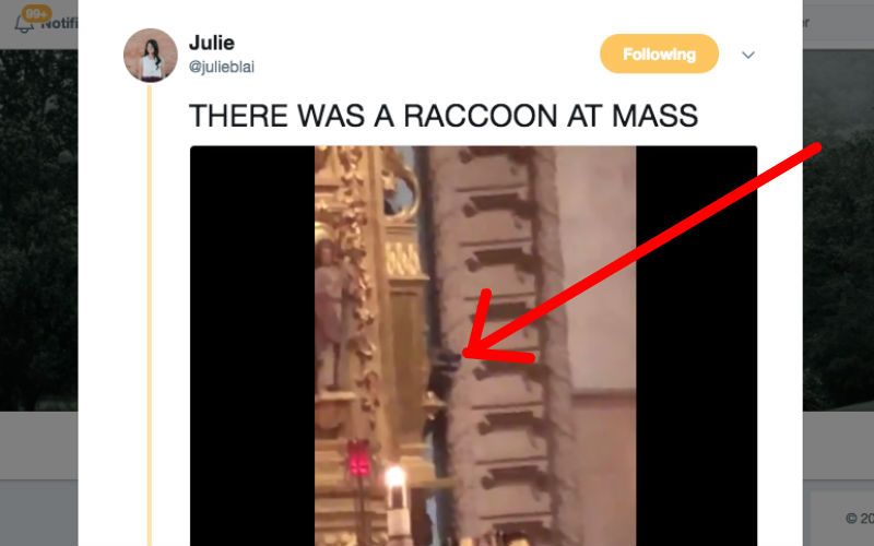 You don’t see this very often! Last week at the Catholic University of San Diego, a raccoon snuck into Mass and started climbing around the sanctuary. The animal was quiet and still enough at first that not many people noticed it perched at the front of the church, until...