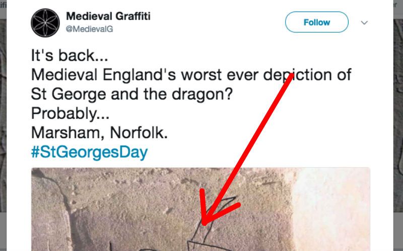 Happy feast of St. George! St. George has been the patron of England for centuries, and you can find beautiful St. George iconography there as a result. But not every artistic attempt is the same! A great Twitter account called Medieval Graffiti from the Norfolk Medieval Graffiti Survey organization decided...
