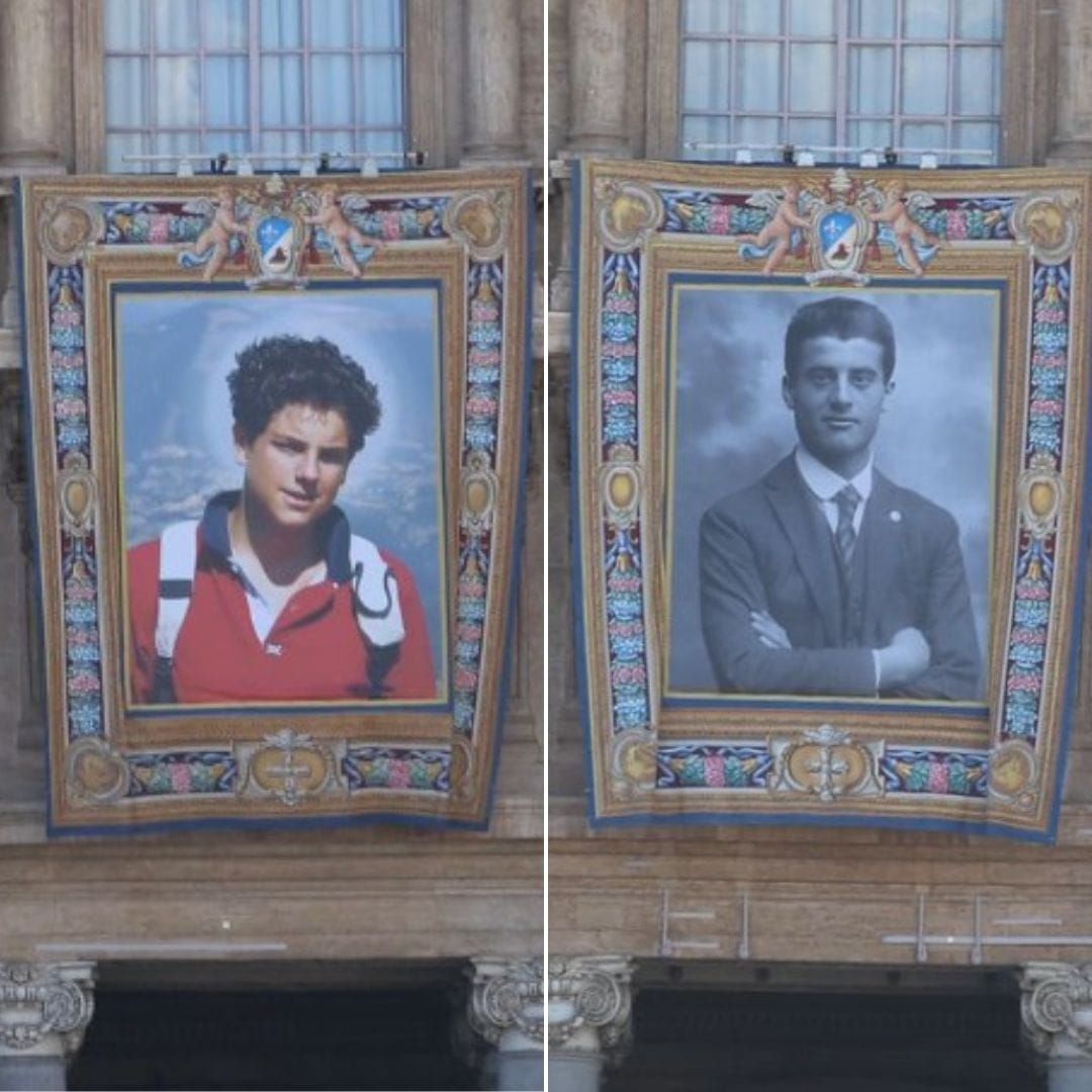 The official banners honoring Carlo Acutis and Pier Giorgio Frassati have been unveiled on the massive façade of Saint Peter’s Basilica!