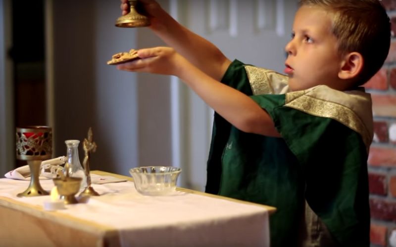 Upon returning home from work, this Catholic dad came home to a sweet surprise: his daughter dressed as the Virgin Mary and later, as St. Philomena!