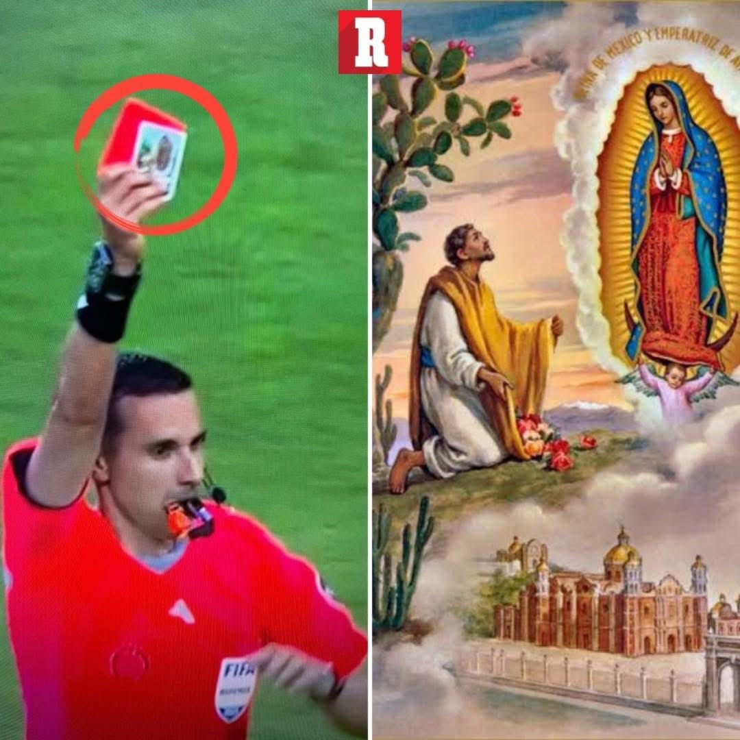 When the referee sent off Boca soccer player Nicolás Figal with a red card, he accidentally pulled an Our Lady of Guadalupe holy card from his pocket.