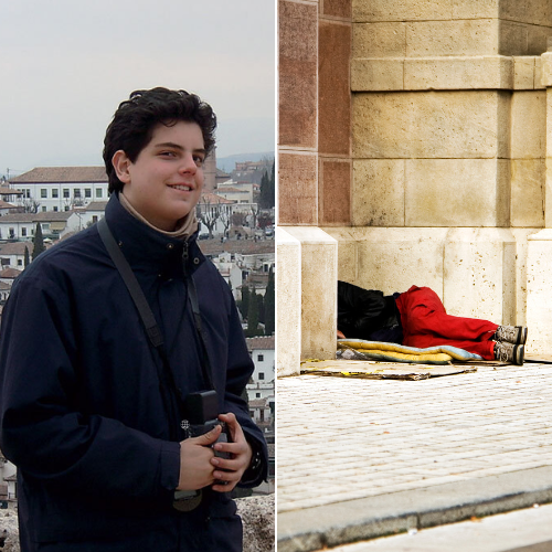 "Carlo saw the man lying on a piece of cardboard. He began to cry. He was very shaken."