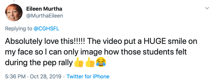 This user commented, “Absolutely love this!!!!! The video put a HUGE smile on my face so I can only image how those students felt during the pep rally. 👍👍😂”