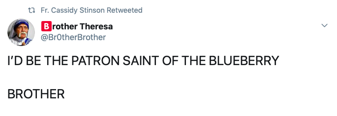 Another user said, “I’d be the patron saint of the blueberry. / Brother”.