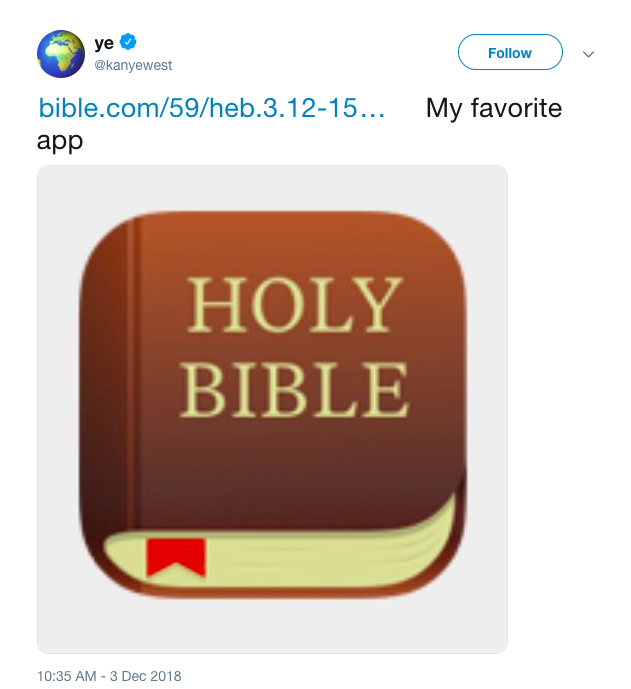West also posted within his tweet a link to Hebrews 3:12-15.