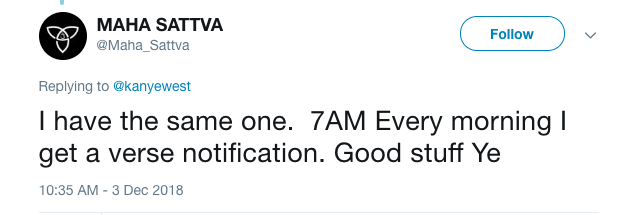 This user added, “I have the same one. 7AM every morning I get a verse notification. Good stuff Ye.”