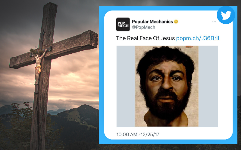His Twitter thread reads, “This image is one of the biggest anti-Christian psyops in history. / The methodology behind this ‘reconstruction’ is some guy just picked a random skull from the area and time in which Christ lived, did an artistic ‘reconstruction of what he might have looked like,’ and now it’s framed as a ‘scientific depiction.’