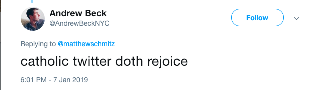 This user said, “Catholic twitter doth rejoice”