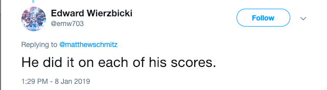 This user also said, “He did it on each of his scores.”