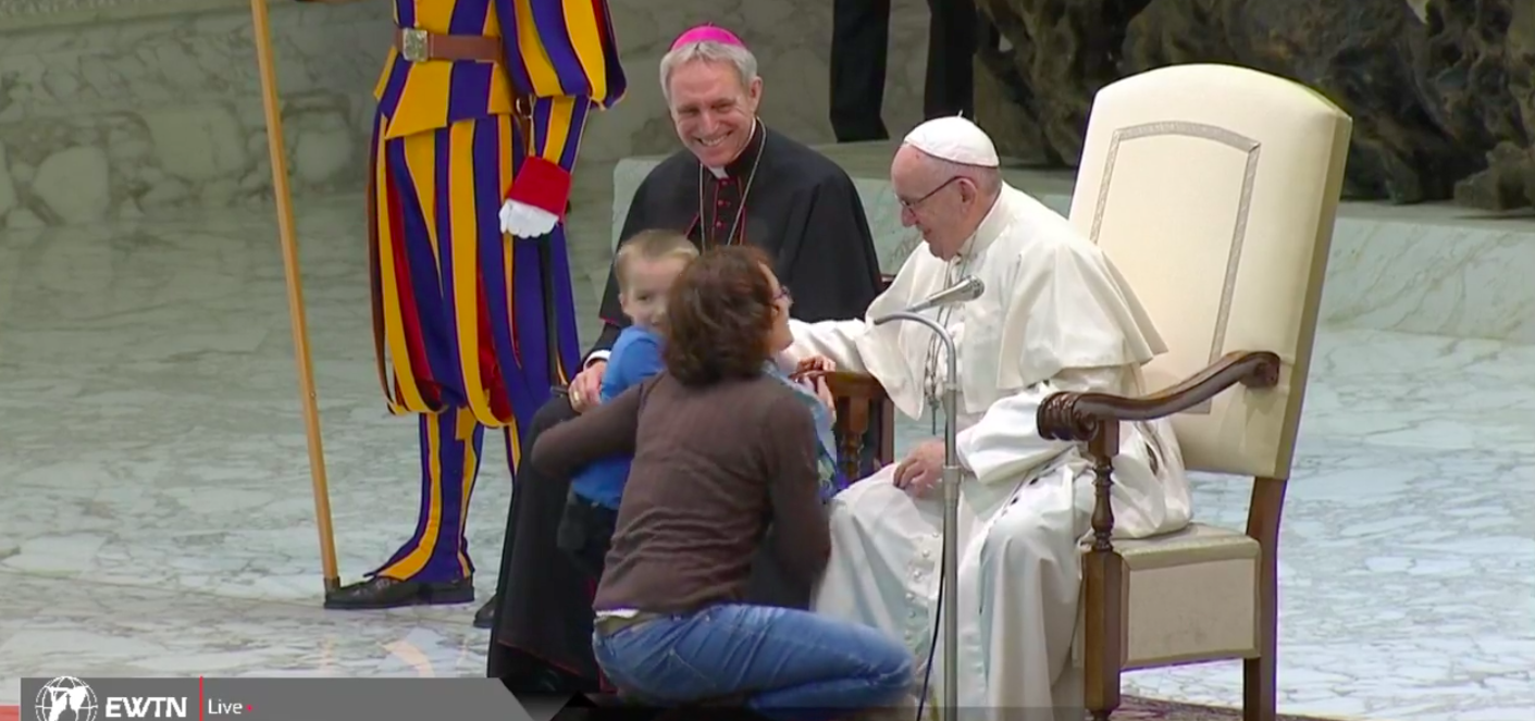 Pope Francis had an amazing response after a mute autistic boy escaped his mother and ran on stage during the Vatican audience today.