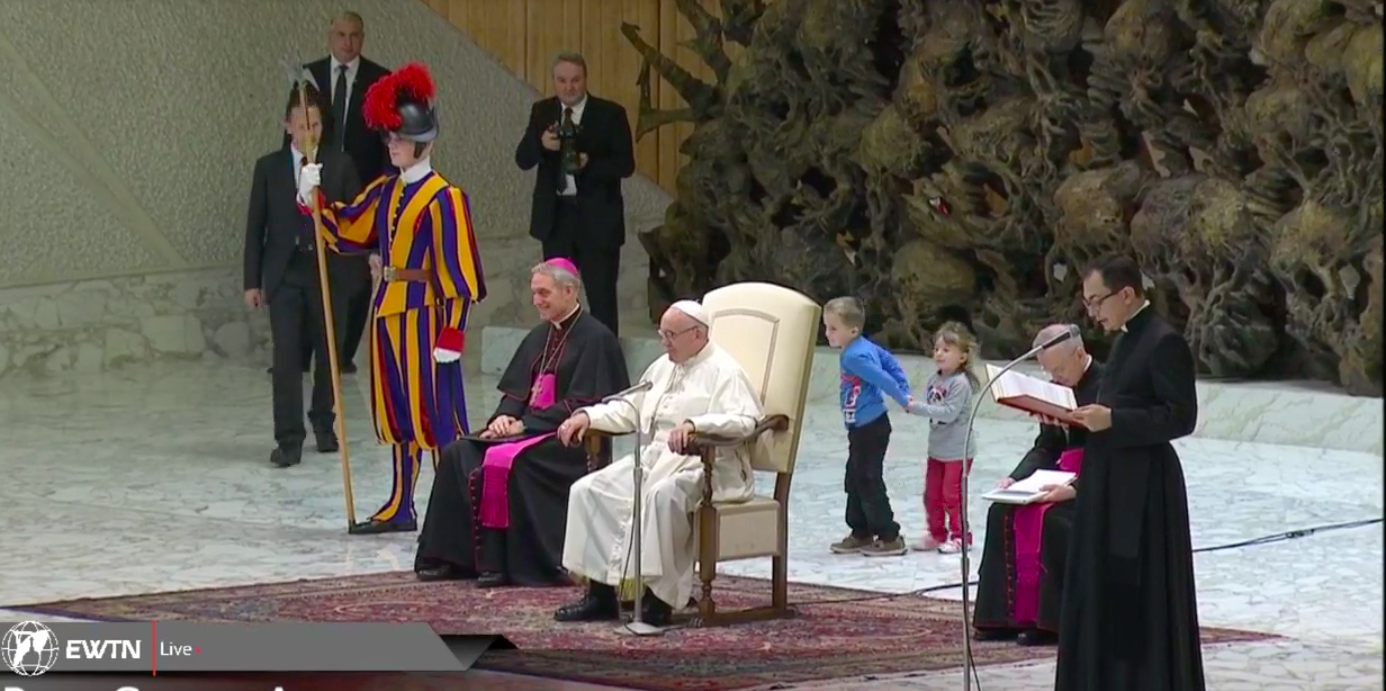 When his mother ran on stage to get him, the pope said, “Just let the boy play here if he wants to. Just leave him.”