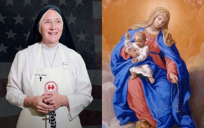 Sr. Dede (Deidre) Byrne of the the Community of the Little Workers of the Sacred Hearts of Jesus and Mary lead a LIVE election rosary via YouTube at 7:30 pm ET on Nov. 3.