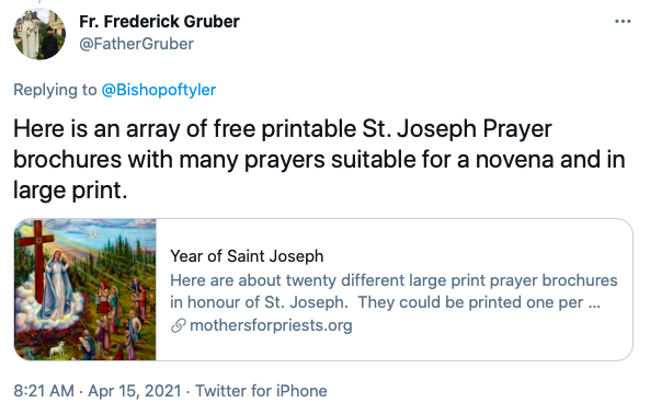 Following his tweet, one priest suggested a website with several St. Joseph prayers.
