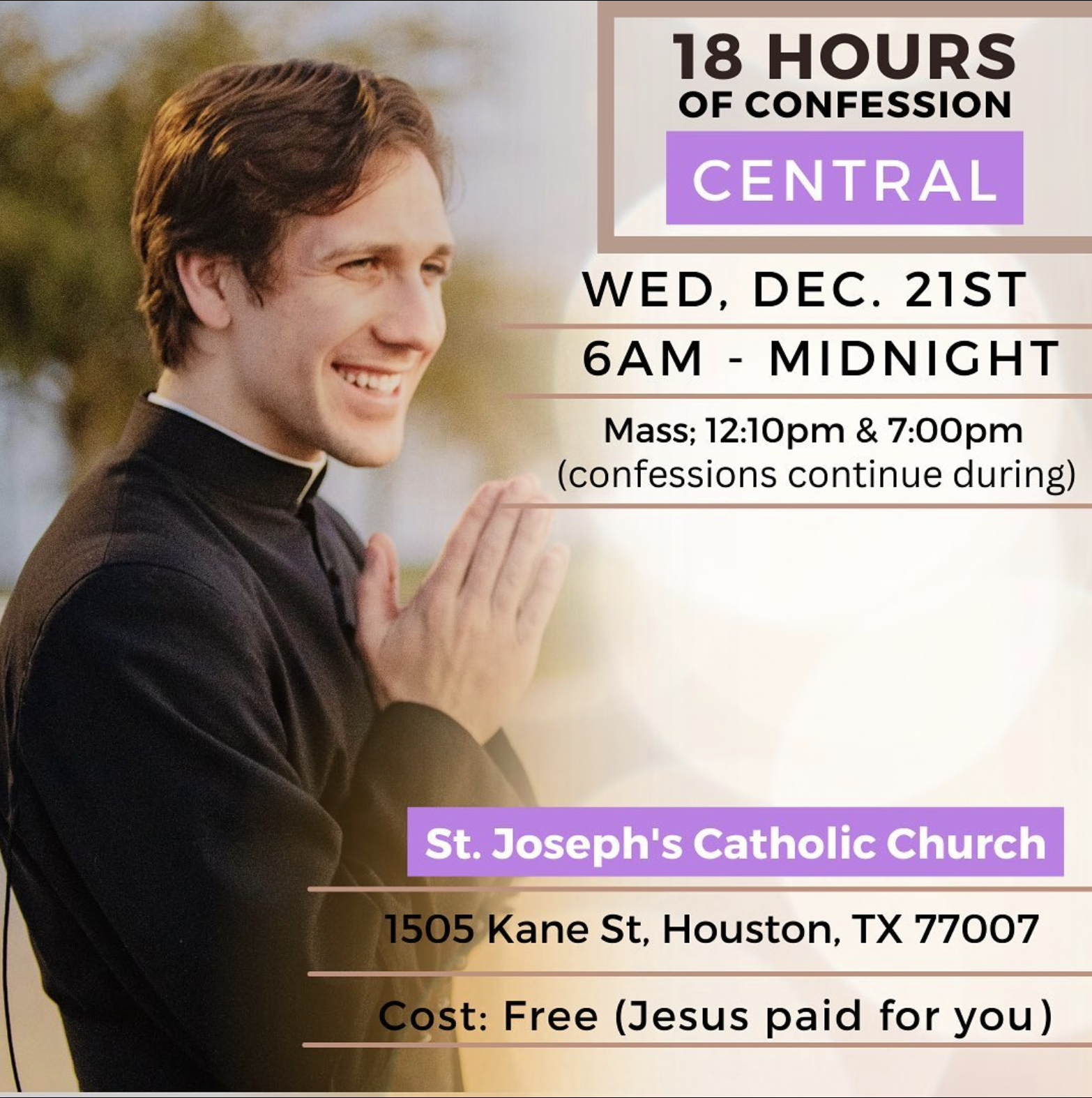The 29-year-old priest, musician, and Catholic speaker first announced his plan on Dec. 13. He advertised “18 hours of confessions” scheduled for Dec. 17.