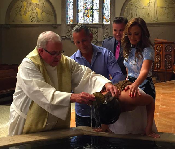 Actress Leah Remini was a member Church of Scientology for three decades, but came back to the Catholic Church a few years ago. This is a photo of her daughter’s baptism in 2015.