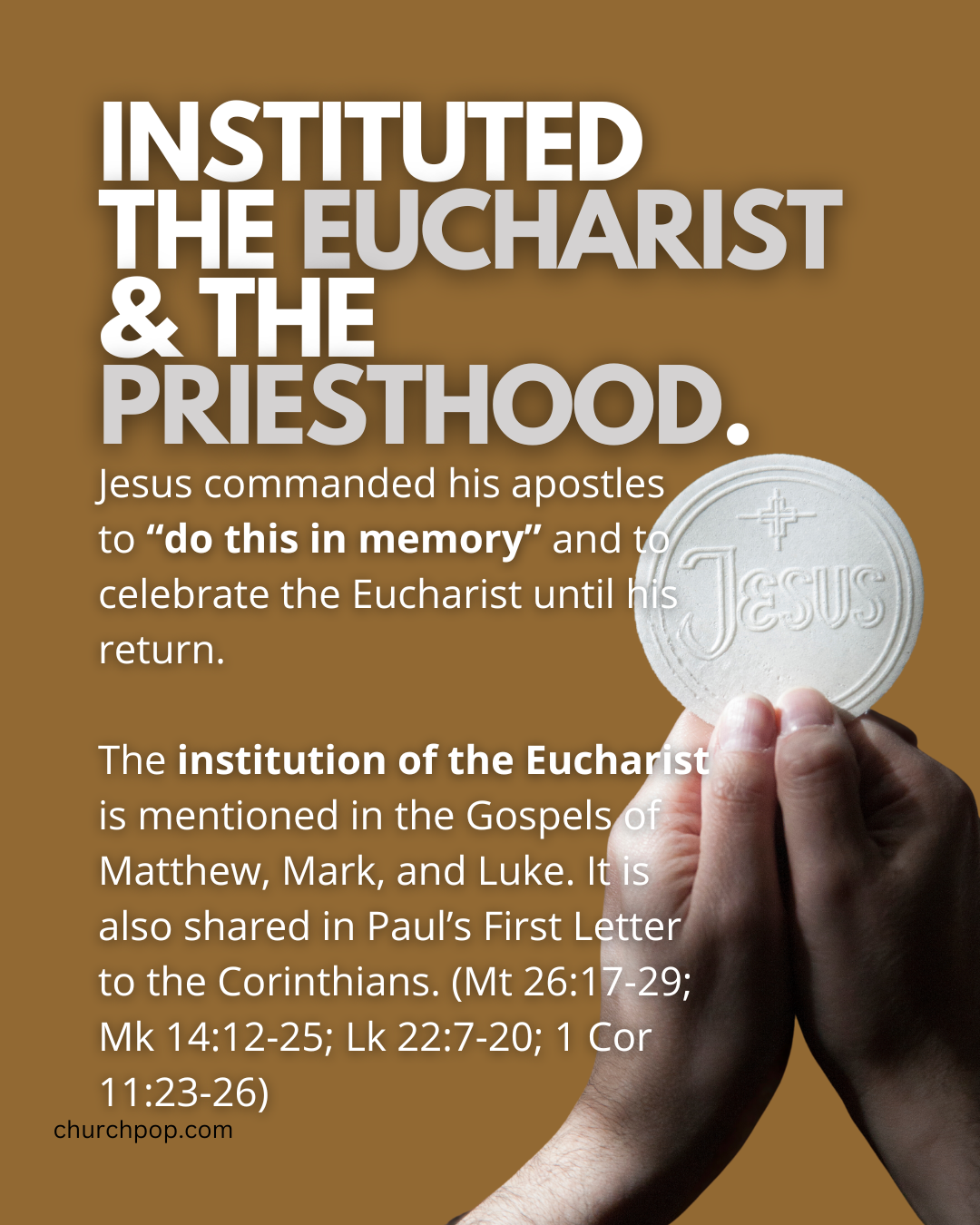 Jesus commanded his apostles to “do this in memory” and to celebrate the Eucharist until his return.