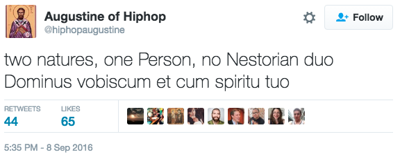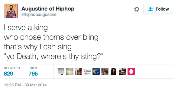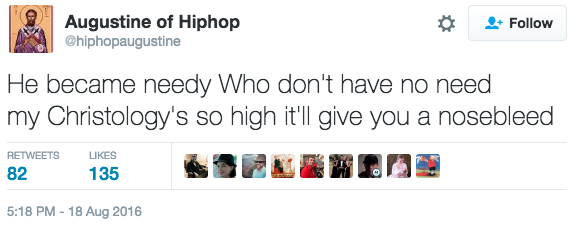 Here’s one of those things: there’s an account on Twitter called “Augustine of Hiphop.” And it’s as amazing as it sounds!