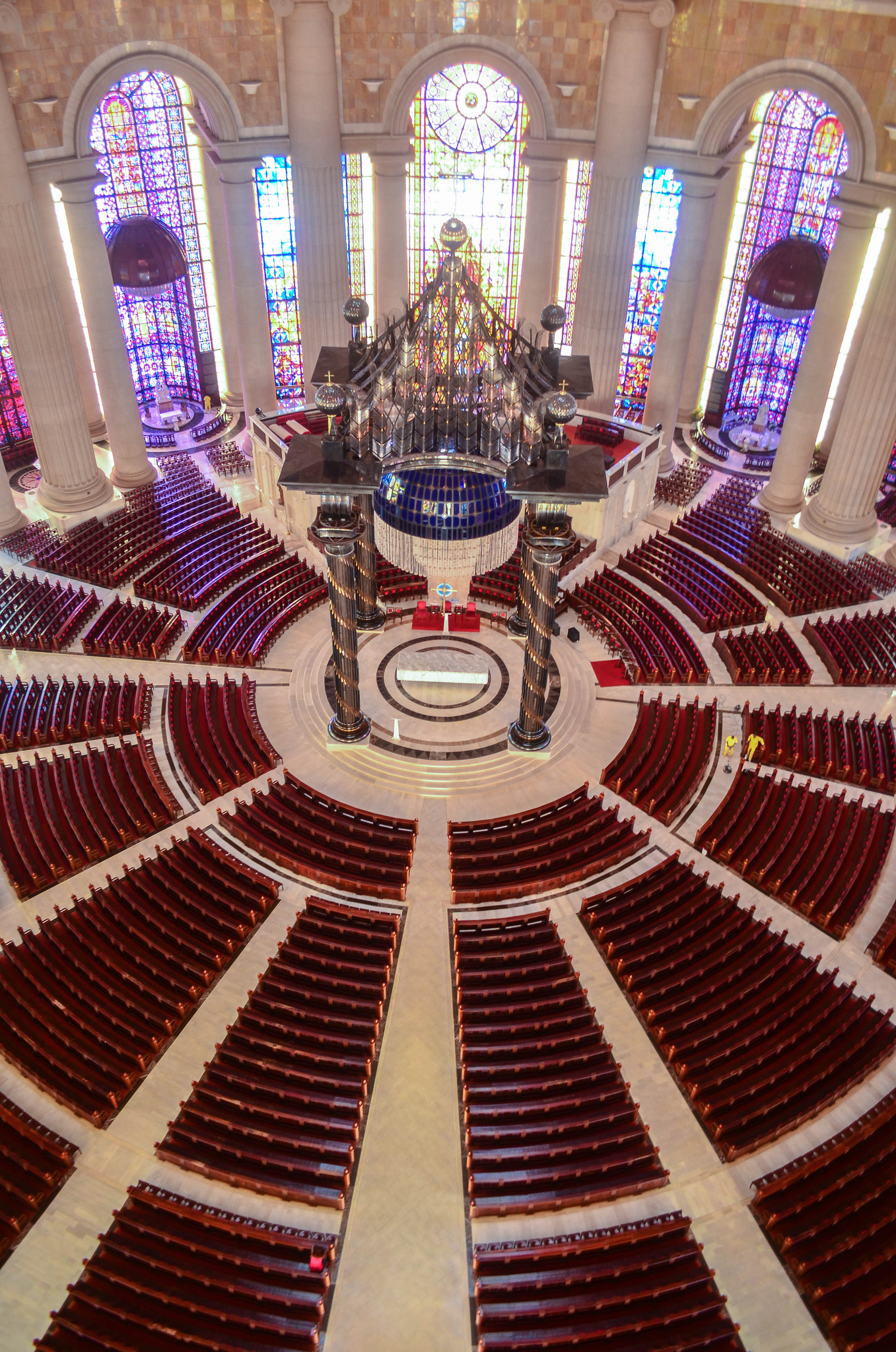 Second, even though the overall footprint of the church is larger, the interior is smaller than St. Peter’s Basilica: it can accommodate up to around 18,000 attendees, compared to St. Peter’s 60,000. Unfortunately, despite it’s size and cost, most services at the Basilica of Our Lady of Peace are only attended by a few hundred people.