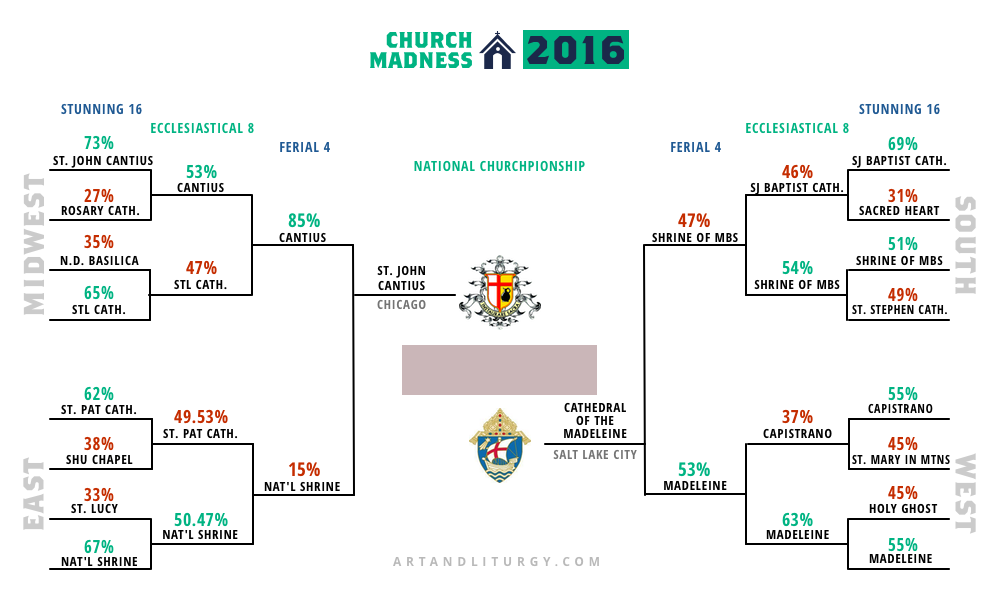 As you can see, Chicago’s St. John Cantius parish had some stiff competition. But it managed to barely eke out a win in the championship match-up: with a total of 16,363 votes cast, St. John Cantius won by only 181 votes.
