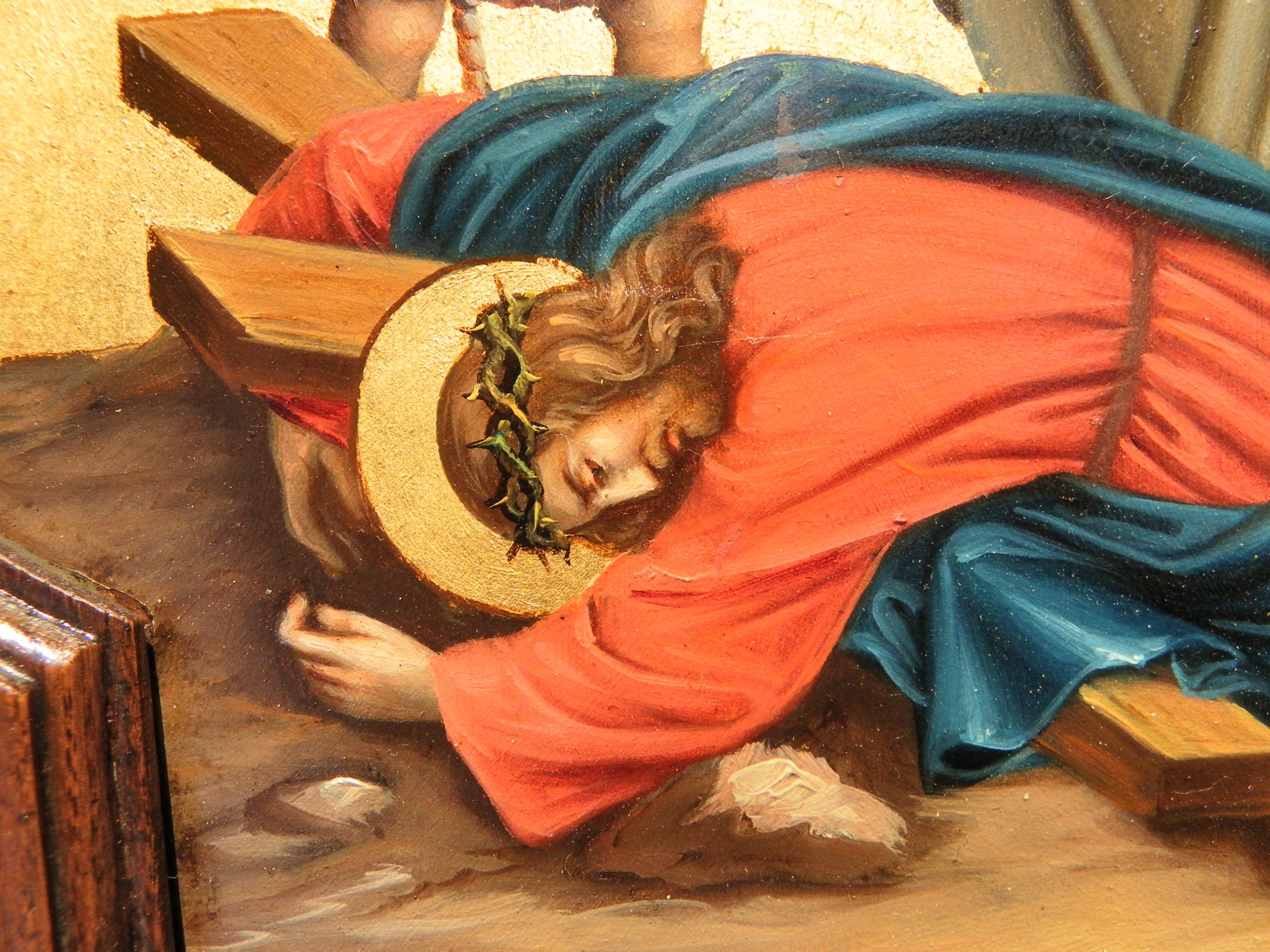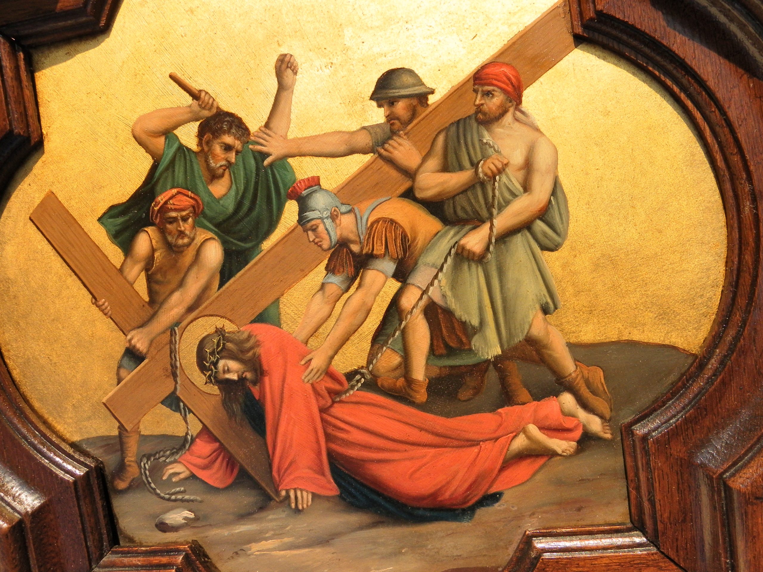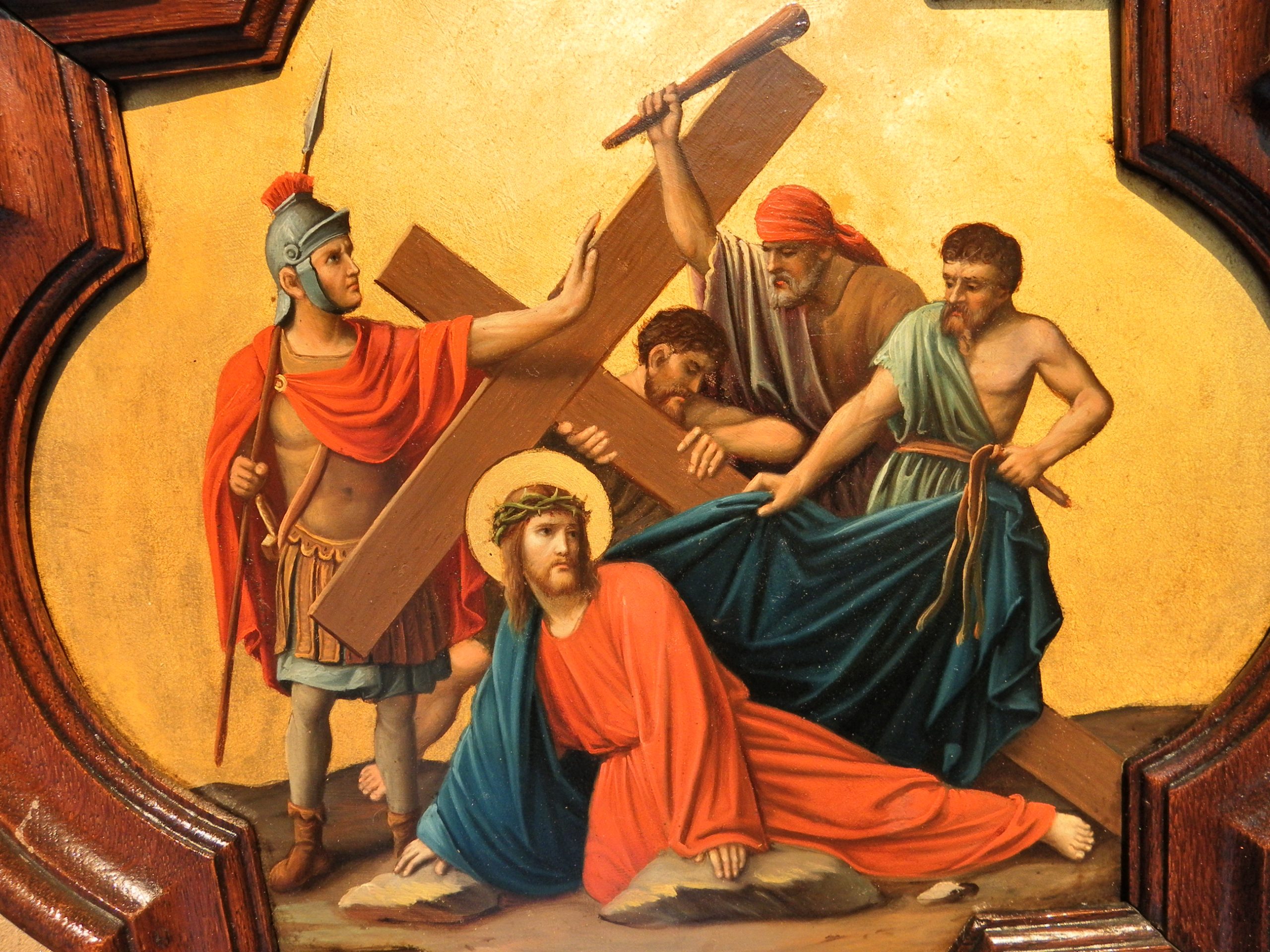 Meditation: Jesus falls under the weight of the cross. But with each fall, he picks up the cross and continues towards Calvary.