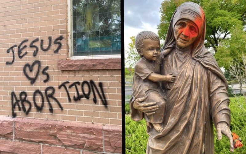 Vandals desecrated the church, aborted unborn child memorial, signs, and statues throughout the church’s property.