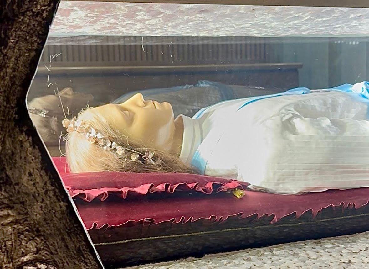 Upstairs, there are additional exhibits, including relics, photographs, and items from Maria’s life, inviting visitors to learn more about the young saint.