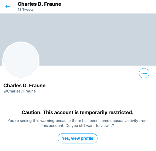 Here’s a screenshot of the suspended account: