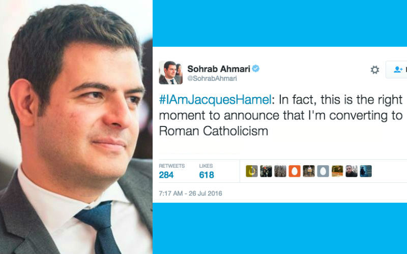 His tweet read: “#IAmJacquesHamel: In fact, this is the right moment to announce that I’m converting to Roman Catholicism.”